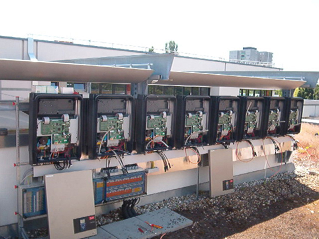 Verdrahtung der Wechselrichter und Datenleitungen zur Anlagenauswertung über das System Solar-Log